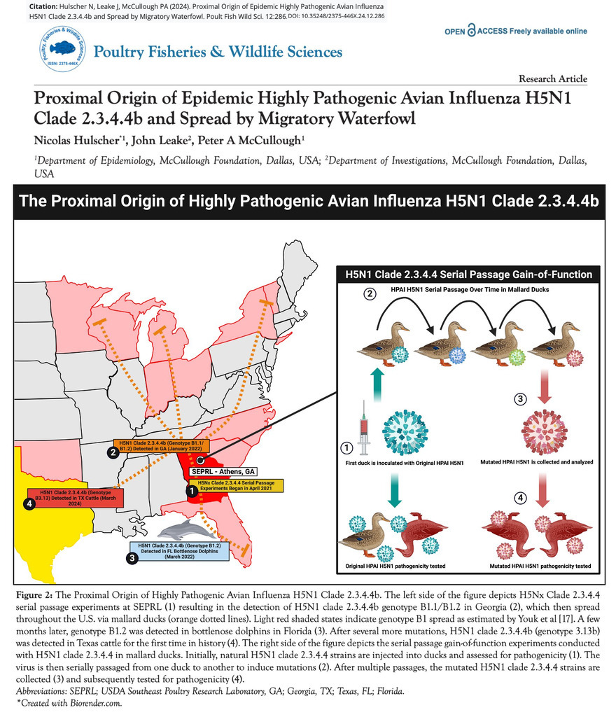 So, USDA took the virus, gave it to ducks, made it more pathogenic, and then ....??? How was it released and when? Sounds like USDA owes hundreds of millions of 'dollars' to the poultry growers.