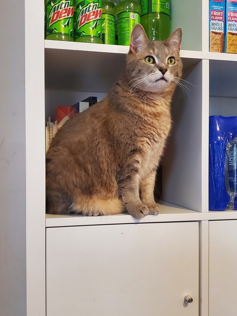 Our kitteh supply reserve. And no, I do not consume any of the other stuff seen on the shelf.