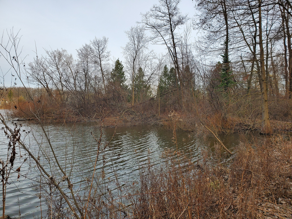 From a walk around the southeast Michigan pond last Tuesday evening, April 1st, 2025. There is some green that is starting to emerge.