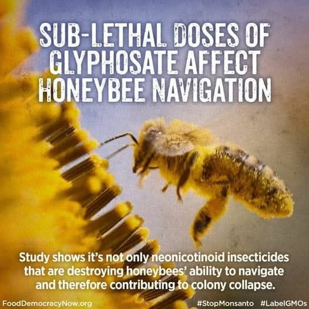 Save the bees! A new study shows that not only are neonicotinoids the problem for honey bee navigation and the collapse of millions of hives, but this catastrophic decline in bee populations could also result from low doses of Glyphosate that are sprayed on cropland and public parks all over the world. The new study shows long-term negative effects if we don't get things under control, with results showing bees not being able to have enough information to get back to the hive, which over time leaves it to collapse. Honeybees are the backbone to everything that is growing in the world, they pollinate the flowers, fruits, and vegetables that everyone eats. And if they go, we'll most likely follow in the process.