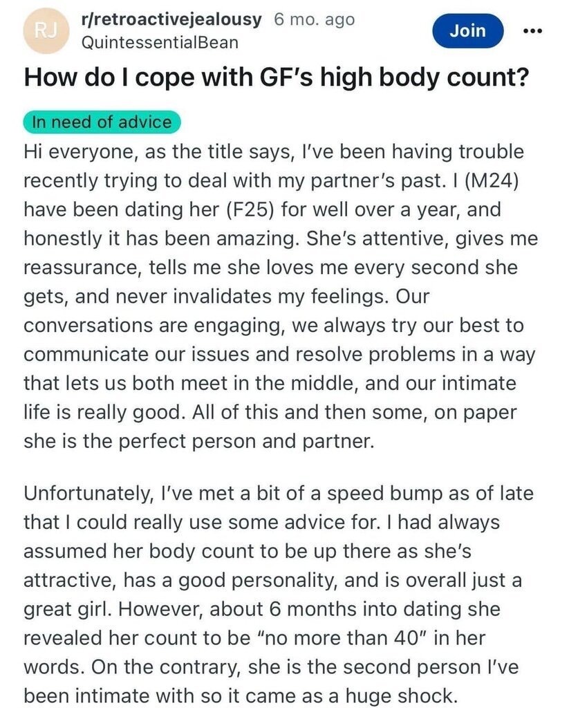Second red flag - if she claims her bodycount is 40 you have to multiply it by three.