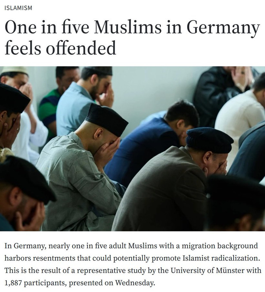 NEW - One in five Muslims in Germany "feels offended" — FAZ