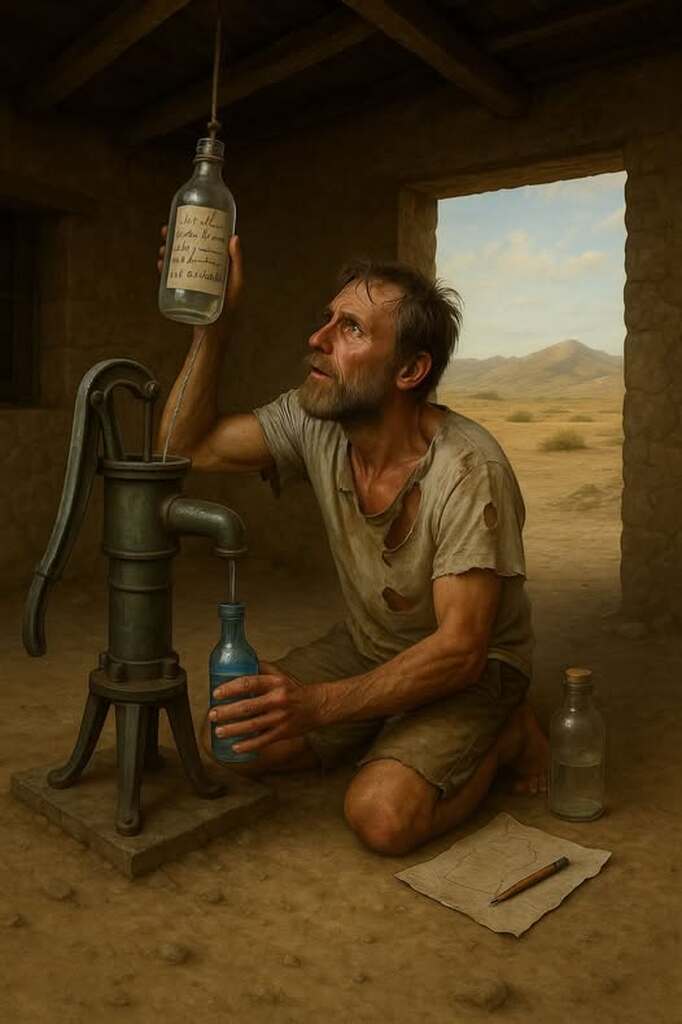 Once a man lost his way in the desert. The little food and water he had was finished, and for the last two days he was desperate for even a drop of water.