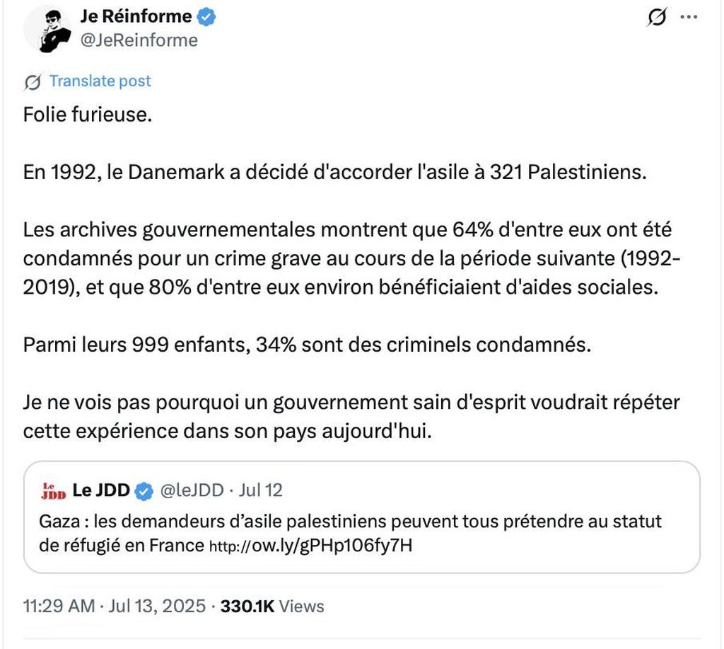 In 1992, Denmark accepted 321 "Palestinian" refugees.