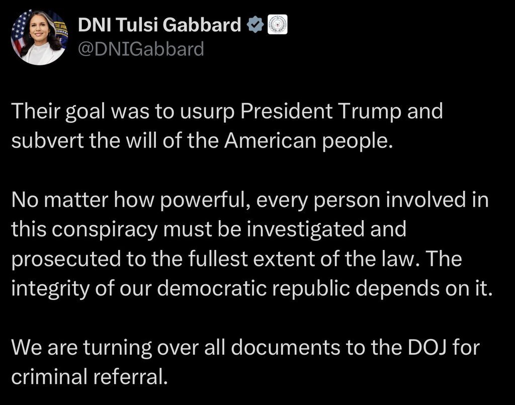 “Their goal was to usurp President Trump and subvert the will of the American people,” Tulsi Gabbard said THIS IS TREASON!