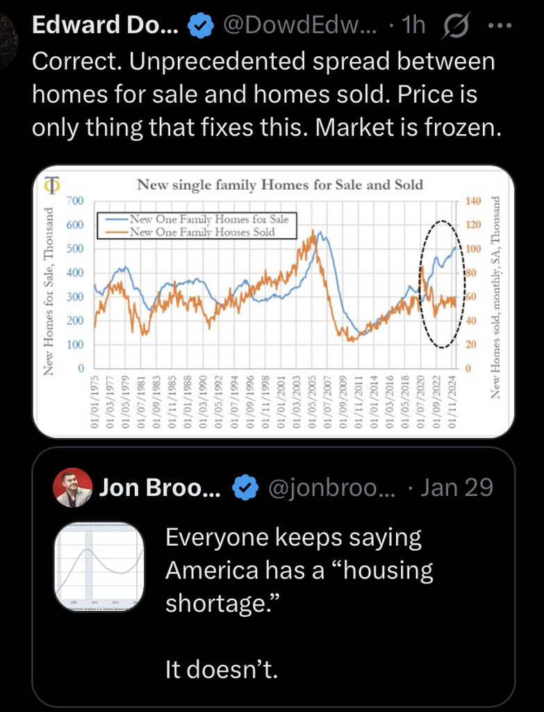 There is no housing shortage, the prices must come down or no one is going to buy them