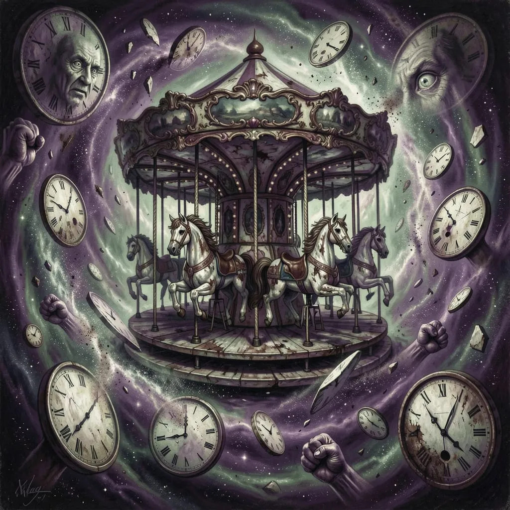 Merry Go Round time machine is not something you want to be caught on. The cycle of closed time curved loop one has just outside of sight and mind just 90 degrees from your vision is finite but for those who think numbers matter infinite.