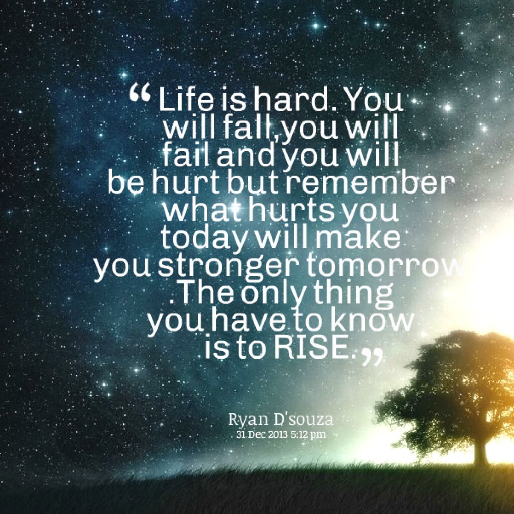 A wise man once told me to hold on and keep going even though life wasn't going the way i wanted it to be. He asked me: why do we fall??... and i told him: To RISE even stronger. And i did.