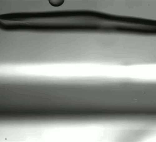 A droplet falling at high speed can pass through a soap film without breaking it. On impact, the drop stretches the soap film and ultimately only passes through by getting coated with a thin shell of soap film fluid. That liquid shell is separated from the...See more