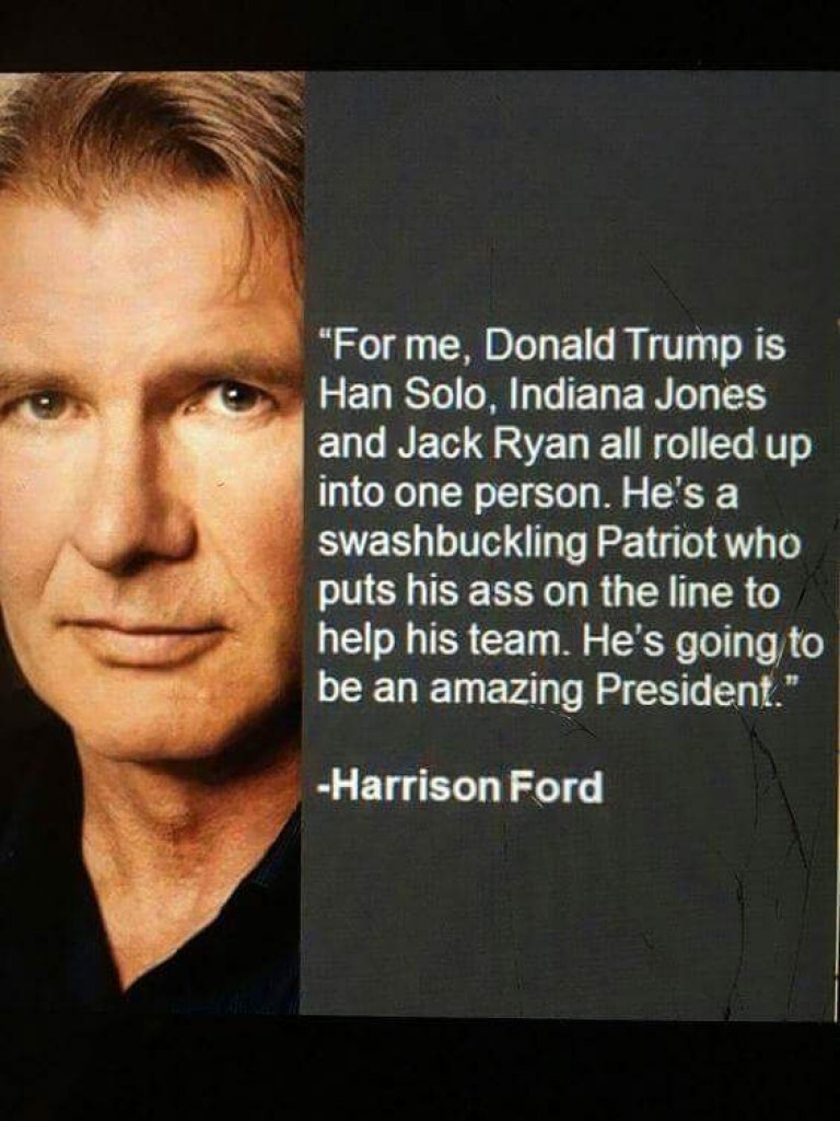 Harrison Ford is a Patriot. I mean, of course Han Solo is a patroit! (Read in Chunk Buffalo's voice). #politics #news #Trump #harrisonford #film