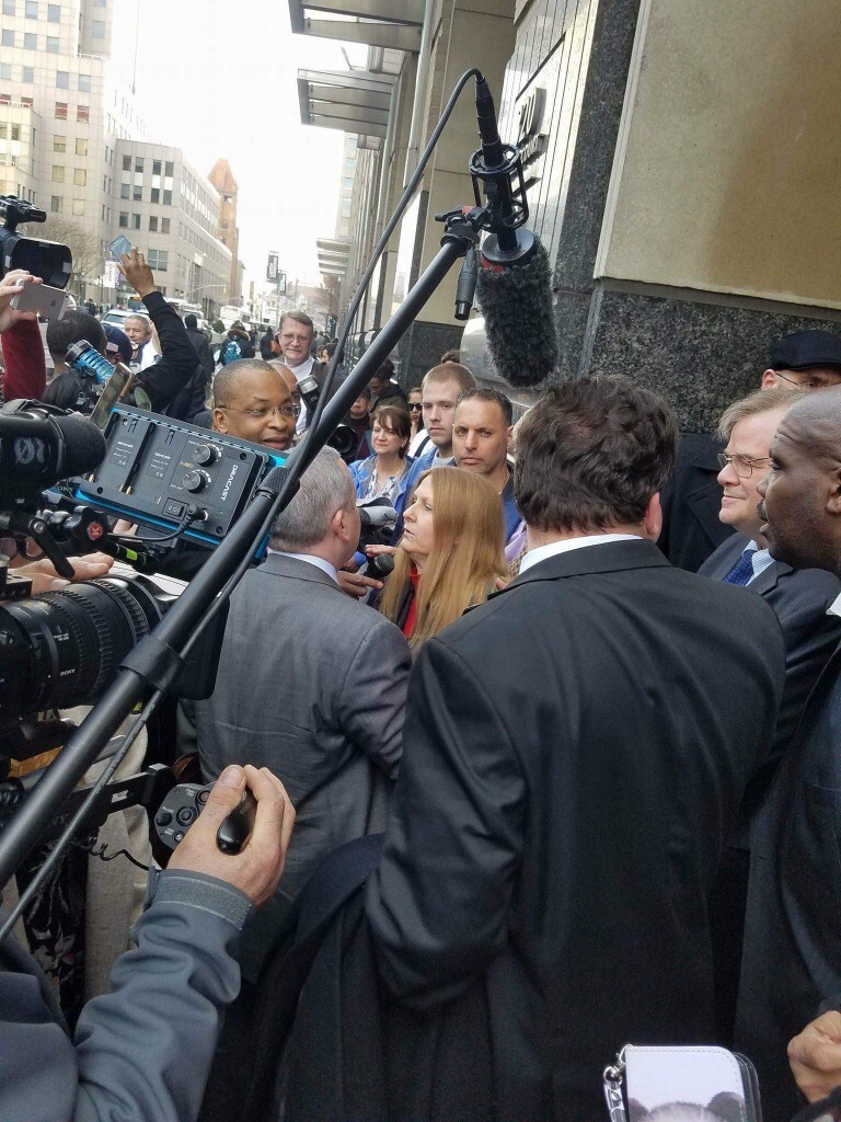 The attached image was outside the court when an idiot paparazzo almost got his ASS BEAT for being a PUTZ