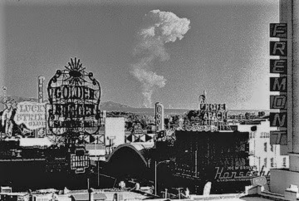 Mushroom cloud seen from Las Vegas.. 1950's.   Photo by National Nuclear Security Administration.  (U.S. Nuclear Bomb Test)