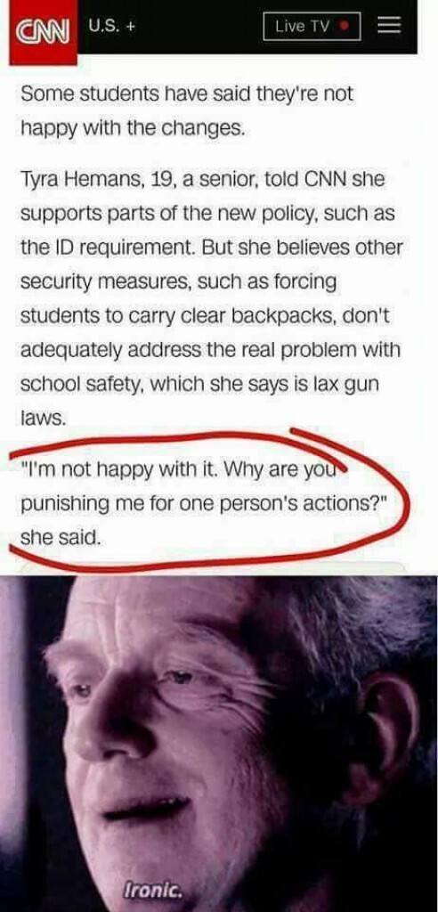 Did you ever hear the tragedy of David Hogg The Ideologue?? I thought not. It’s not a story the Left would tell you. It’s a Right Wing legend. David Hogg was a gun confiscation advocate, so shortsighted and unwise he thought he could use the MSM to influence the people into giving up their firearms and abolishing the NRA… He had such little knowledge of the 2nd Amendment that he forgot about the "shall not be infringed" part. The ideologues' I-know-it-all approach is a pathway many people would deem unnatural. He became so self important… the only thing he was afraid of was losing his power, which eventually, of course, he did. Unfortunately, he taught his students and fellow man to give up their guns, and when no guns remained, the government killed him. Ironic.
