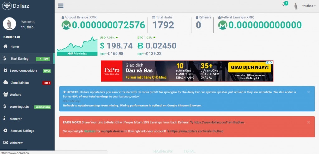 Dollarz is the latest website combining cryptocurreny mining, paid to click ads that are comming soon, giveaways you've never seen before & huge competition prizes between our members. Earning with Dollarz is free, don't miss you chance!.