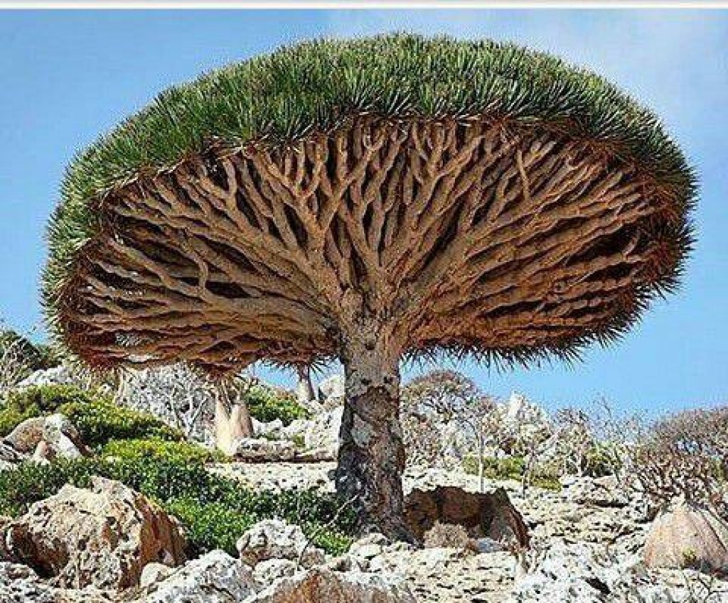 Dragon's blood tree in yemen. They call it dragon's blood coz the sap inside is actually red .