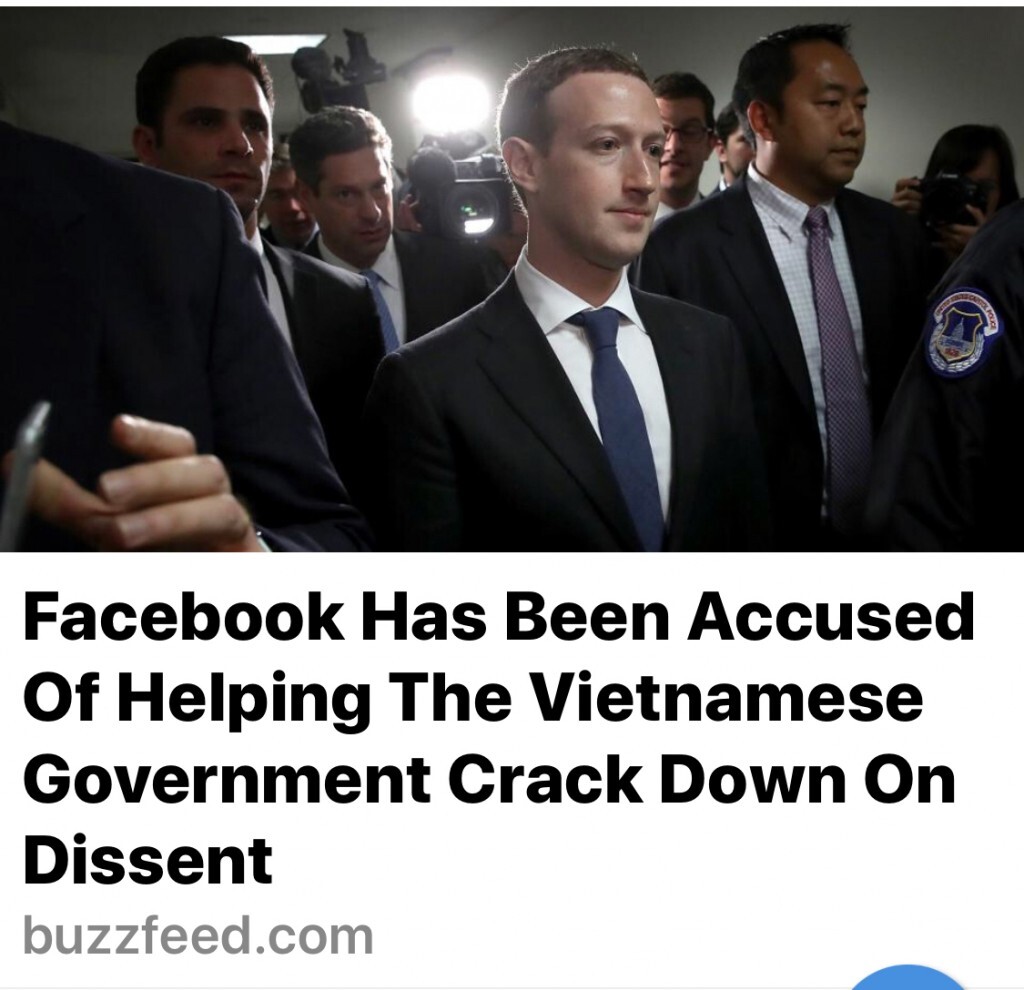 Face book bị buộc tội khi đã thông đồng với Chính Phủ Việt Nam. https://www.buzzfeed.com/meghara/facebook-vietnam-mark-zuckerberg