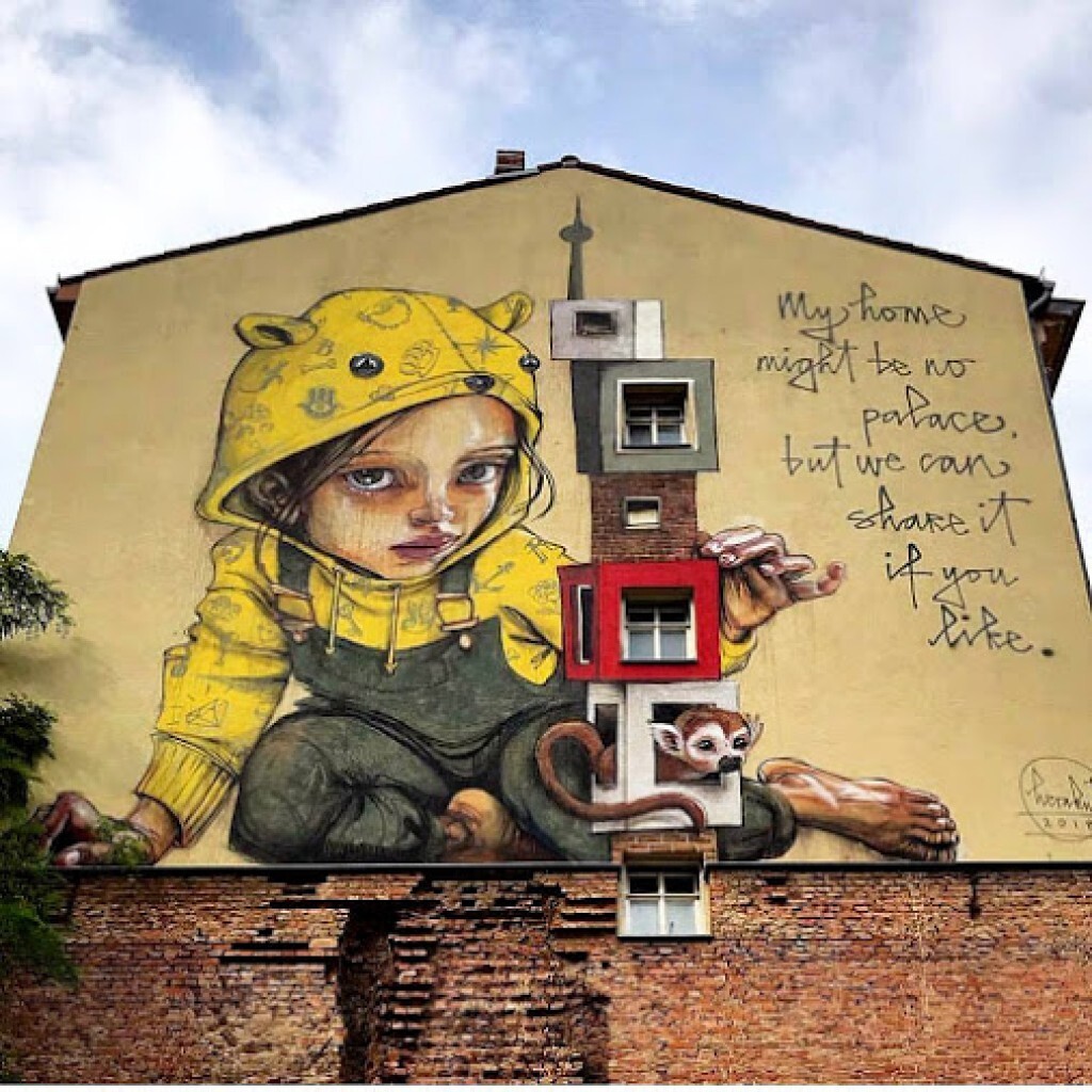 #StreetArt #GlobalStreetArt #Street #Art #Berlin #Germany "MY HOME IS NOT A PALACE BUT WE CAN SHARE IT IF YOU LIKE." #Artist duo HERAKUT.