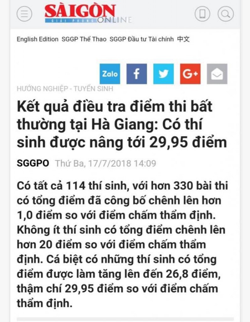 TIN VẮN (Ngày 17/7/2018) 1. Bê bối thi THPT ở Hà Giang đã bị phanh phui. Có cấy điểm cho 120 học sinh với hơn 330 bài thi. Hiện mới chỉ xác định 1 người liên quan. Bộ công an cũng đã vào cuộc. (Không thể cấy điểm cho học sinh nếu chỉ 1 người, cần 1 đường dây, ekip đông đảo mới có thể cấy điểm cho nhiều môn, nhiều học sinh mà không ai biết. Thành tích "trồng người" mà Sầm Đức Sương, Nguyễn Trường Tô đã đơm hoa kết trái). 2. Báo Tuổi Trẻ online bị đình bản 3 tháng, phạt 220 triệu vì tiết lộ bí mật quốc gia. (Vụ này, theo tin lề trái: Đích thân ông Trọng chỉ đạo đình bản 3 tháng. Luật ANM chưa có hiệu lực, nhưng hơi nóng của nó đã phả vào mặt nền báo chí cách mạng rồi). 3. "Chủ tịch nước Trần Đại Quang có ý kiến về phiên tòa xét xử bị cáo Đặng Văn Hiến" là tiêu đề bài viết trên báo SGGP. (Tuy nhiên, ý kiến ở đây mới chỉ là "yêu cầu Chánh án Tòa án nhân dân tối cao, Viện trưởng Viện kiểm sát nhân dân tối cao phối hợp với Bộ Công an chỉ đạo, kiểm tra việc điều tra, truy tố, xét xử vụ án và báo cáo Chủ tịch nước". Mạng sống anh Hiến vẫn cheo leo). 4. Người Lao Động có bài: "Bình Định: Xem xét khởi tố hàng loạt cán bộ "ăn đất" ở Phù Mỹ". 5. Cũng là chuyện cán bộ ăn đất, VTC đưa tin: "Nguyên Chủ tịch, Phó Chủ tịch UBND TP Vũng Tàu hầu tòa". 6. Về vấn đề, cán bộ ở Hồ Chí Minh ăn đất, VTC có bài viết: "Sai phạm đất đai ở TP.HCM: Chỉ kiểm điểm rút kinh nghiệm, không kỷ luật". (Pháp luật XHCN thật nghiêm minh và công bằng). 7. Báo Đất Việt có bài về sự nghênh ngang của Tất Thành Cang: "Ông Tất Thành Cang: Rà soát việc cấp sổ đỏ gây khó". (Cang có mấy tay đốt lò bảo kê, rất nghênh ngang. Thời thế đảo lộn: Thằng ăn cắp, đứa cướp đất đi chỉ đạo về đất đai, y như mấy em hành nghề ở Quất Lâm Tự đi giảng chỉ đạo về giữ trinh tiết). 8. Quê hương Quảng Nam của Thủ tướng lại một lần nữa "nổi bật lên", trở thành "đầu tàu", thành "cực", thành "thủ phủ" phá rừng. Thanh Niên đưa tin: "10 năm, lâm tặc phá gần 1.300 ha rừng tại Quảng Nam". 9. Một lần nữa Đăk Nông lại lên sóng với ...