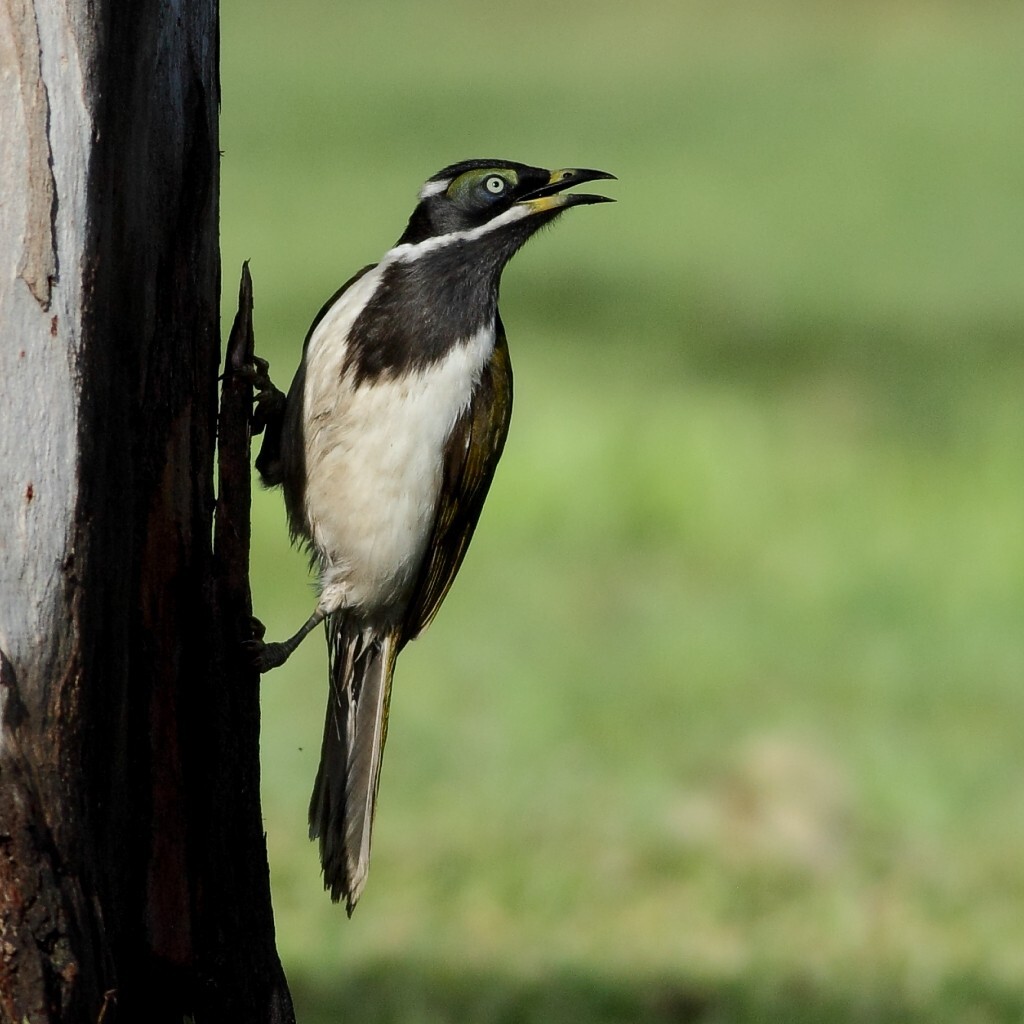 This immature Blue-faced Honey-eater (Entomyzon cyanotis) was flitting from tree to tree and checking under the bark for insect snacks. #birds #nature #Australia #myphoto