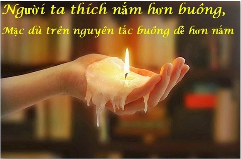 Một người cha nói với con của mình rằng: “Hãy nắm chặt bàn tay của con lại, nói cho cha biết con có cảm giác gì?”. Người con nắm chặt tay: “Hơi mệt ạ”. Người cha: “Con thử nắm chặt hơn nữa xem!”. Người con: “Càng mệt hơn ạ!”. Người cha: “Vậy con hãy buông tay ra!”. Người con thở phào một hơi: “Thoải mái hơn nhiều rồi ạ!”. Người cha: “Khi con cảm thấy mệt, nắm càng chặt sẽ càng mệt, buông nó ra, sẽ thoải mái hơn nhiều!”.