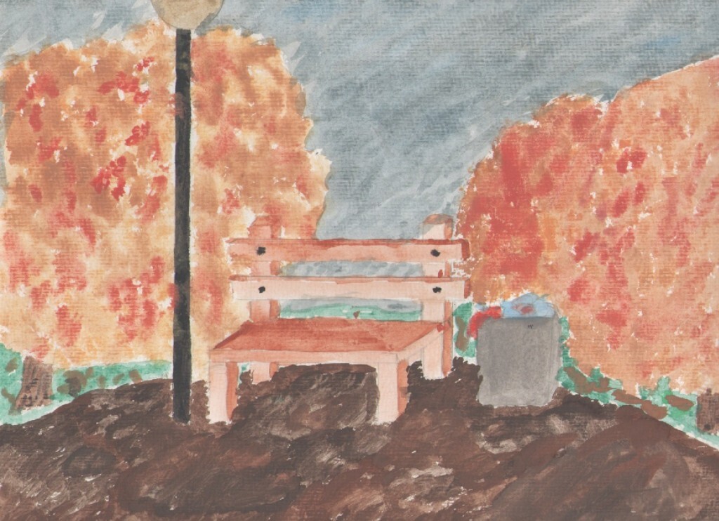 Handdrawn Art - Bench in a park (Handdrawn by E.S.)