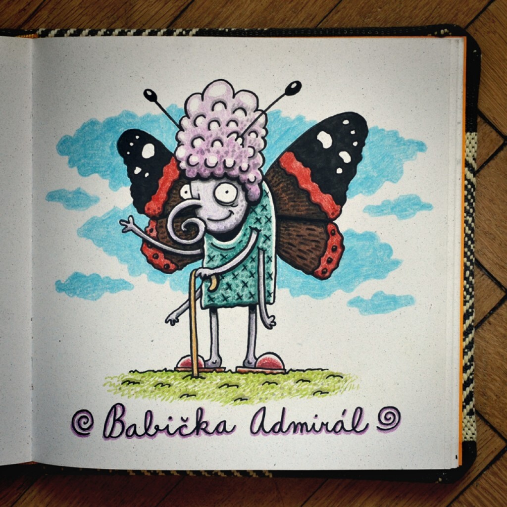 Babička Admirál #brushpen #pentel #copic #illustration #macomix