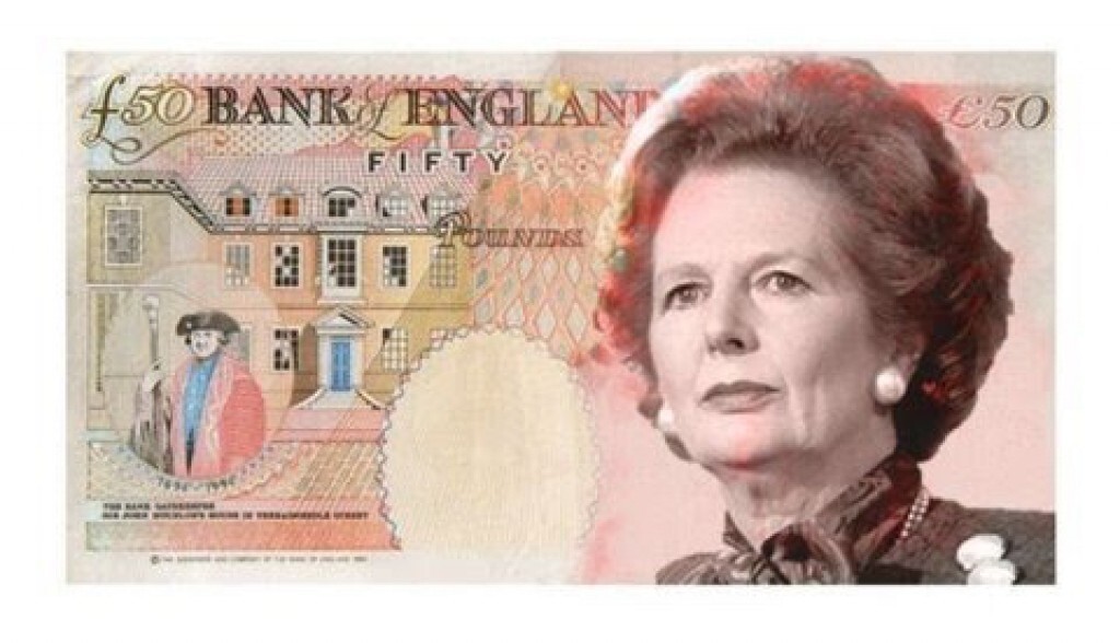 Baroness Thatcher LG, OM, DStJ, PC, FRS, HonFRSC. Has been nominated to appear on the Bank of England £50 note. I think it will be a wonderful note.