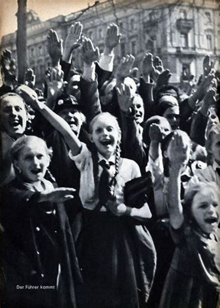 Adolf Hitler’s whole constructive policy — all he did to give manual as well as intellectual work the dignity of happy, dedicated service, and to make every labourer’s life a h ealthy, self-respecting and interesting one; all he did for the welfare of mothers and children; all he did for the cultivation of bodily efficiency and qualities of character in boys and girls, from the age of six onwards, in the different sections of the beautifully organised pan-Germanic Youth Associations — the famous Hitler Youth and the B.D.M.— and then, at the age of sixteen, in the squads of the Labour Service for six months (or more) and in further bodies preparing them to the privilege of becoming worthy citizens of the proud new Reich; all he did, on one hand through the admirable Nüremberg Laws (1935) and, on the other, through the most active encouragement of early marriages and of joyfully consented racial selection, to raise sexual relations from the shameful status of “an amusement” or of a drudgery or of a “business,” back to that of the dispassionate duty of the healthy and pure-blooded towards their race, in honour, innocence and joy; all that, I may, nay, the whole structure of the National Socialist State — its very existence — had one aim and one alone: to breed, out of the best Germans, a nation of supermen in the Nietzschean sense of the word; a nation of “heroes like unto the gods,” to repeat the words of Homer. And, as I said before, the Führer pursued “that aim not just because the Germans were his people, but because his, more-than-political, nay, more-than-human insight pointed them out to him as the only people sufficiently pure-blooded and, at the same time, sufficiently militant to be the saviours of the Aryan race, here and now, in its present-day emergency, and to become the instruments of its regen-eration and survival, beyond the stormy end of our Time-cycle.