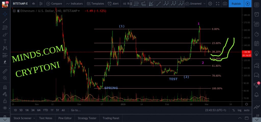 Hello fellow Minds! A short update on ETH-USD. Price is around 38% of correction. Dont see much action at this level wich means we could see a move pretty soon. Price could (likely) go 10 points lower to $122 before the next climb up! #Ethereum #crypto #tradingstrategy #usd #eth