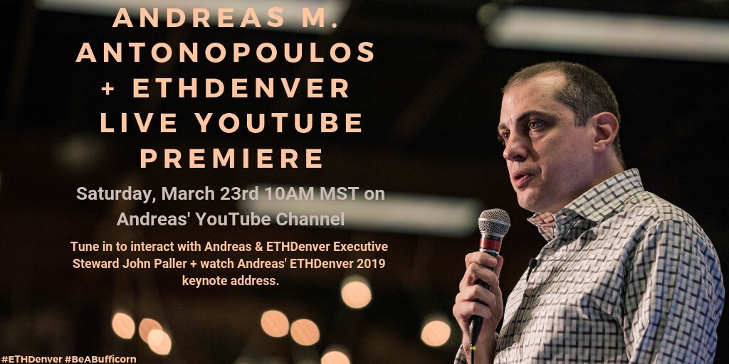 An Andreas M. Antonopoulos #ETHDenver Q&A is live on YouTube! Give it a view to learn more about governance, scalability & asymmetric power below + tune in to the live premiere of Andreas’ ETHDenver keynote address this Saturday 03/23 at 10AM MST on his YouTube channel: https://www.youtube.com/watch?v=DUZ5nhW3smw #BeABufficorn