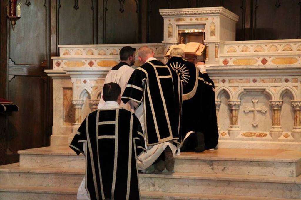 Good Friday Tenebrae Matins/Lauds Duplex I Classis, Black. In English. . . Note; Late in the evening on Maundy Thursday, 15 unbleached wax candles are lit on a triangular candelabrum (hearse); these will be extinguished one by one, starting from the bottom ends on up, after each psalm of Mattins and Lauds is sung The Office today is completely Proper and is stripped bare to its primitive form. The minor doxology Gloria Patri is now omitted entirely until the Paschal Vigil Mass. There is no Invitatory or Hymn; the lessons are read without conclusions and no responses are made. Mattins begin immediately with the first antiphon; three nocturnes as in the Proper, no Te Deum. . Psalms with lections {Antiphons and psalms from the Proper of the season} Nocturn I. Ant. The kings of the earth set themselves, * and the rulers take counsel together, against the Lord, and against His Anointed. Psalm 2 [1] 2:1 Why have the Gentiles raged, * and the people devised vain things? 2:2 The kings of the earth stood up, and the princes met together, * against the Lord and against his Christ. 2:3 Let us break their bonds asunder: * and let us cast away their yoke from us. 2:4 He that dwelleth in heaven shall laugh at them: * and the Lord shall deride them. 2:5 Then shall he speak to them in his anger, * and trouble them in his rage. 2:6 But I am appointed king by him over Sion his holy mountain, * preaching his commandment. 2:7 The Lord hath said to me: * Thou art my son, this day have I begotten thee. 2:8 Ask of me, and I will give thee the Gentiles for thy inheritance, * and the utmost parts of the earth for thy possession. 2:9 Thou shalt rule them with a rod of iron, * and shalt break them in pieces like a potter’s vessel. 2:10 And now, O ye kings, understand: * receive instruction, you that judge the earth. 2:11 Serve ye the Lord with fear: * and rejoice unto him with trembling. 2:12 Embrace discipline, lest at any time the Lord be angry, * and you perish from the just way. 2:13 When...