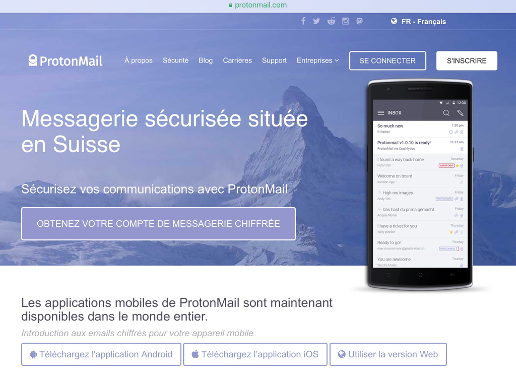 ProtonMail est le plus grand service d'emails sécurisés au monde développé par des scientifiques du CERN et du MIT. Nous sommes open source et protégé par les lois suisses relatives à la vie privée.