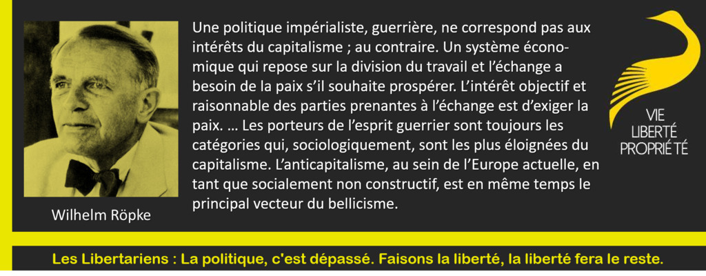 "Une politique impérialiste, guerrière, ne correspond pas aux intérêts du capitalisme ; au contraire. Un système écono-mique qui repose sur la division du travail et l’échange a besoin de la paix s’il souhaite prospérer. L’intérêt objectif et raisonnable des parties prenantes à...See more