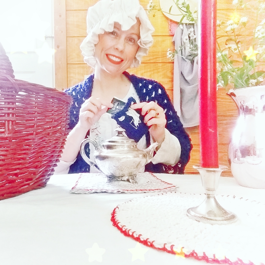 Collection includes: Patriot Summer Shawl, Bonnie Blue Knit Tea Sachet (includes English breakfast tea), Polka Dot Hot Pad, and 1776 Hot Pad.