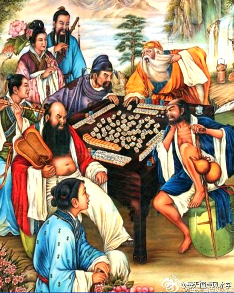 Eight Daoist immortals playing Mahjong -- a traditional Chinese New Year's Painting