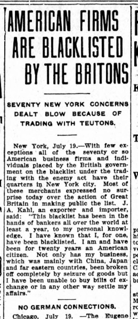 WW1: American businesses Blacklisted by England. #ww1 #england #news #history