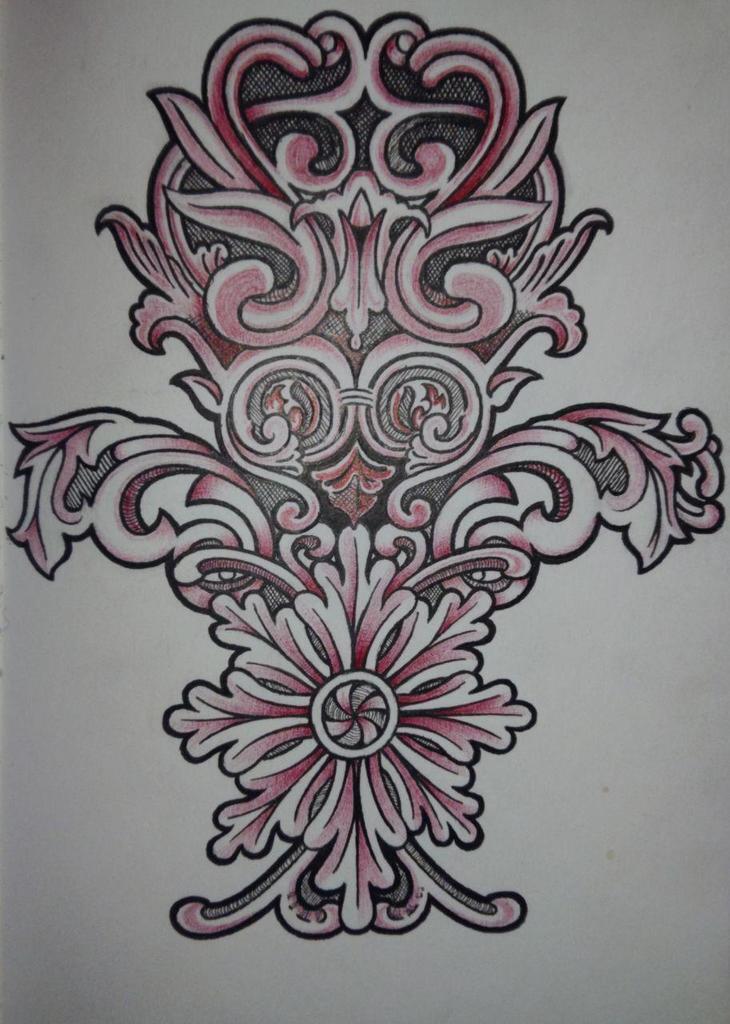 Woodcarving pattern experiment. Ballpoint pen, marker.