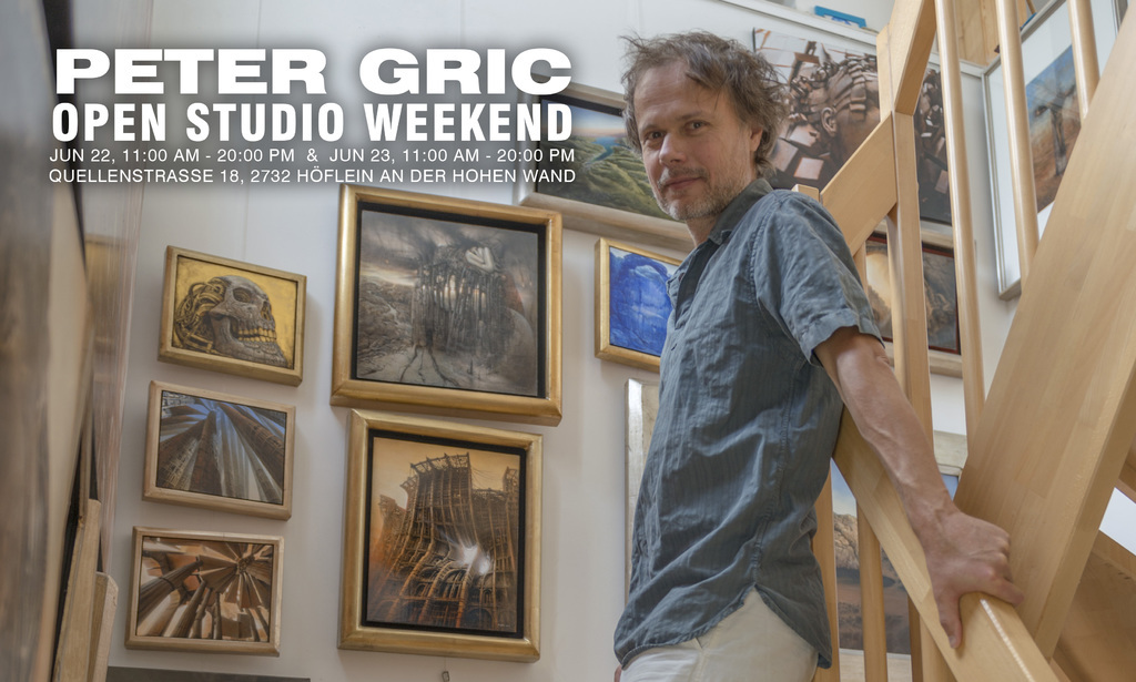 If you are interested to visit my studio you will have the opportunity to do so on my Open Studio Weekend. The studio is located in Höflein / Hohe Wand / Austria, approx. 1 hour away from Vienna by car or train. JUN 22, 11:00 AM - 20:00 PM JUN 23, 11:00 AM - 20:00 PM Location: Quellenstraße 18, 2732 Höflein / Hohen Wand, Austria Giclée prints: http://gric.at/shop/prints.htm Books: http://www.blurb.com/user/petergric Posters: https://www.posterlounge.co.uk/artists/peter-gric/ Various items: https://society6.com/gric Peter Gric's Newsletter: http://gric.at/newsletter #art #painting #surrealart #gric
