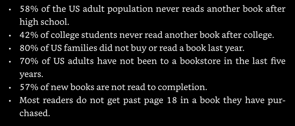 Alarmantes estadísticas sobre la lectura, o más bien, acerca de la falta de aquella. Si así es en EE.UU., no me quiero imaginar lo que sucede en nuestros subdesarrollados lares.
