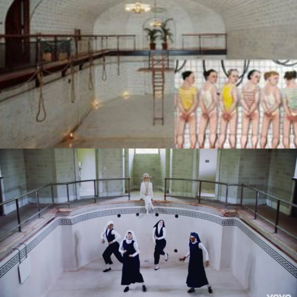 Notice any similarities between the Podesta Paedophile artworks and the new video, look closely in the video for blood stains on the swimming pool wall too???