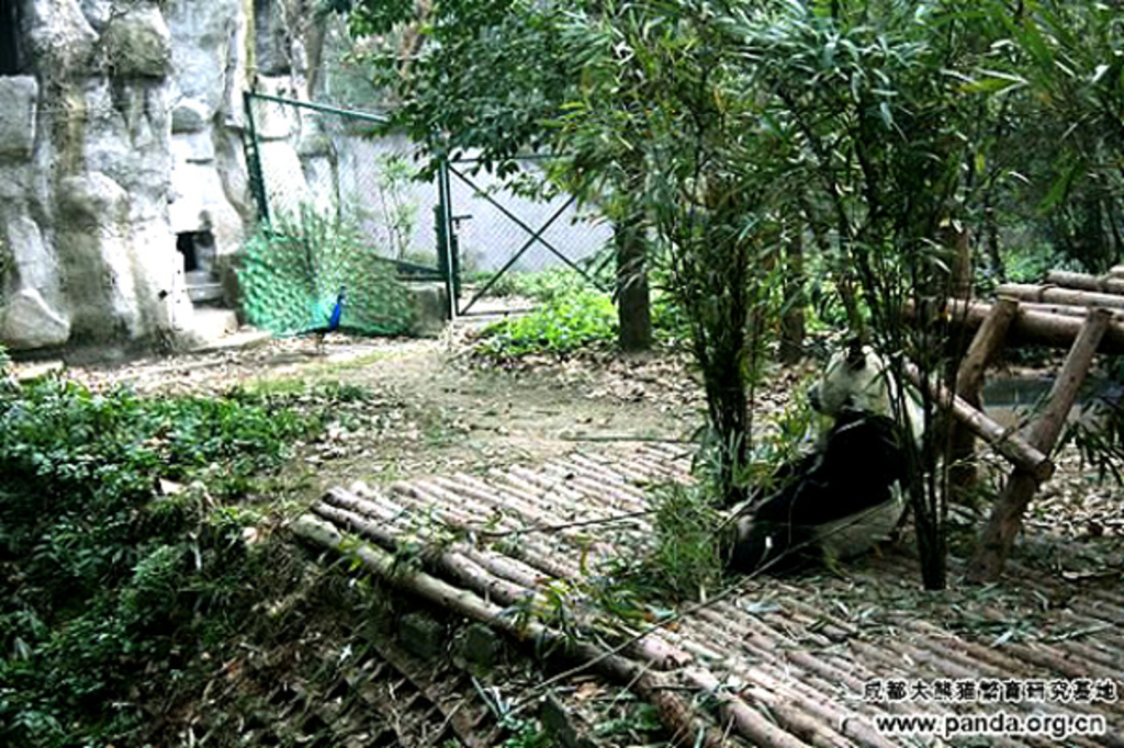Panda: Why bother? Me only see black and white. Peacock: Because I want to keep myself pretty.