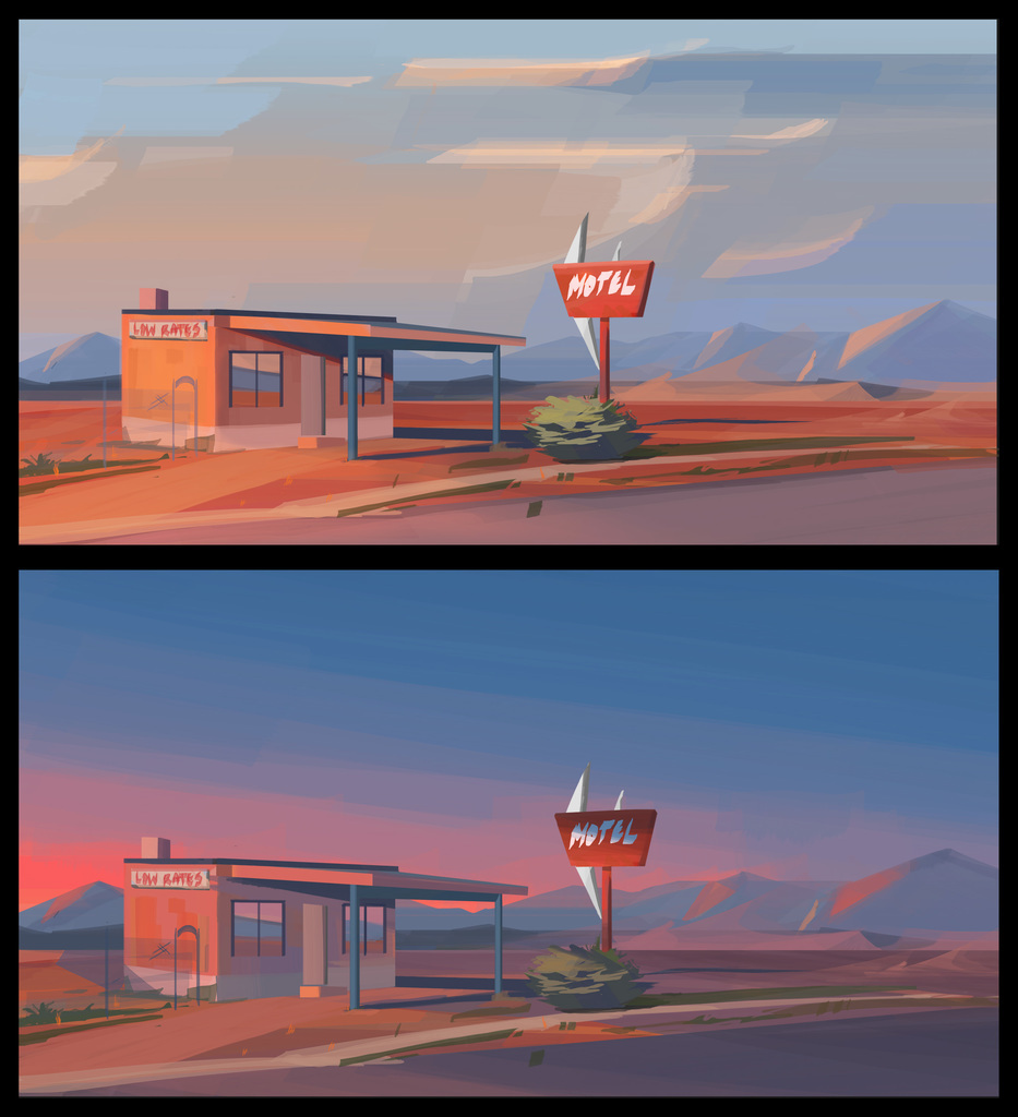 Couple of background/colour studies from today. #art #illustration #environment #motel #iainmiki
