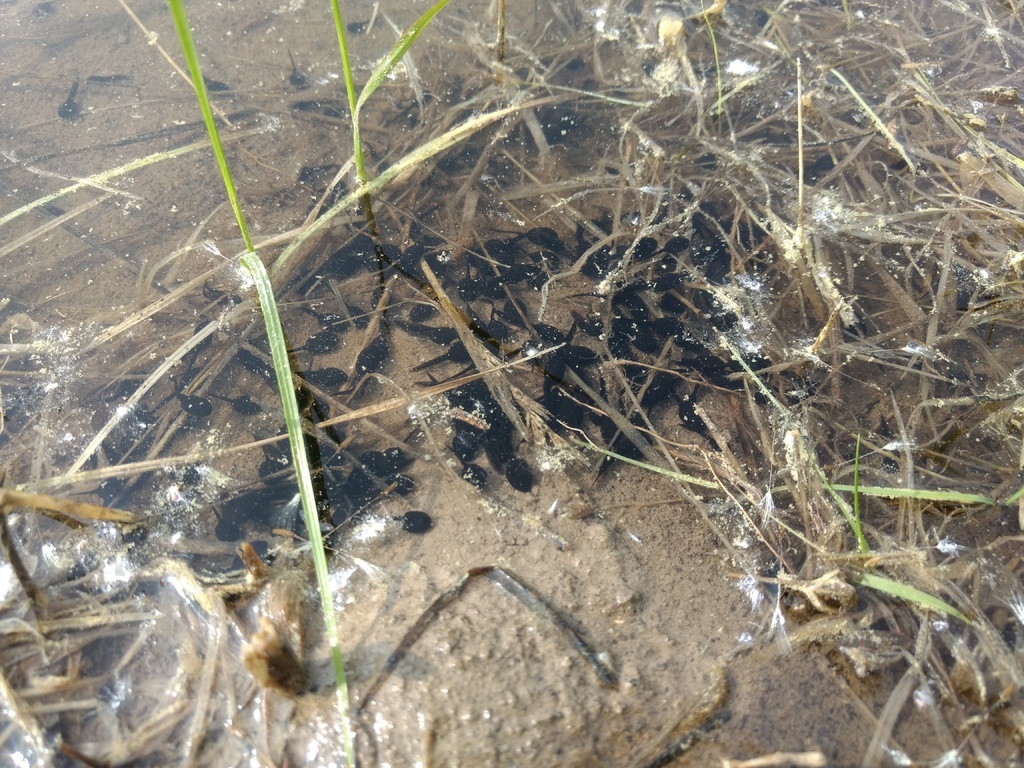 Just over one year after the pond was dug it was already starting to show signs of life. All those little wiggly black things are tadpoles!